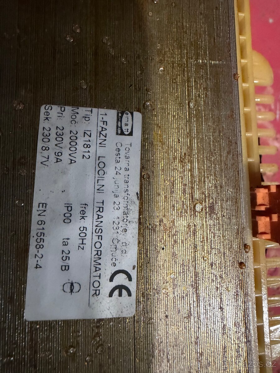 Prodám oddělovací transformátor primár 230v sekundár 230v. 2000VA
