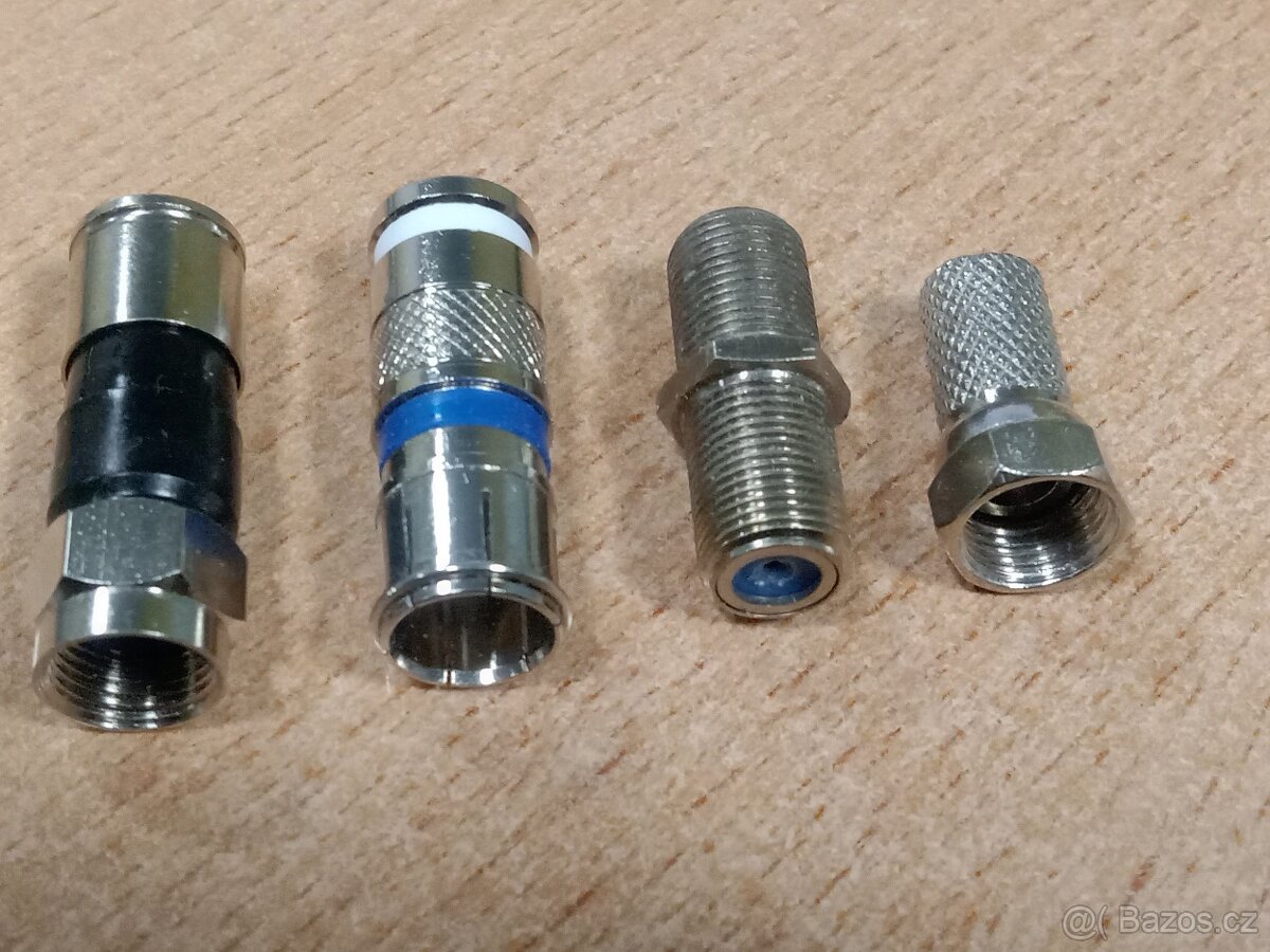 Prodám kabelové F-konektory vhodné pro televizní a satelitní příjem. Jak šroubovací typ, tak i krimpovací - násuvný i šroubovací. Rovněž kabelové spojky, 75 ohm zakončení apod.