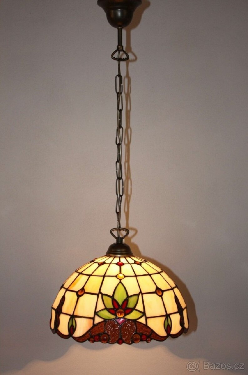 Vitrážový Tiffany lustr -nový - [29.12. 2025]Vitrážové stínidlo je o průměru 30 cm a je určeno pro žárovku E27, max 60W, která není součástí.