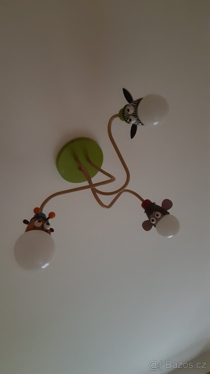 stropní dětské světlo - [1.1. 2026]Prodám dětské stropní osvětlení na motiv květin, dominantní barvy oranžová/zelenkavá. Světlo má tři samostatně svítící "tykadla". Součástí jsou samozřejmě i funkční úsporné žárovky E14.