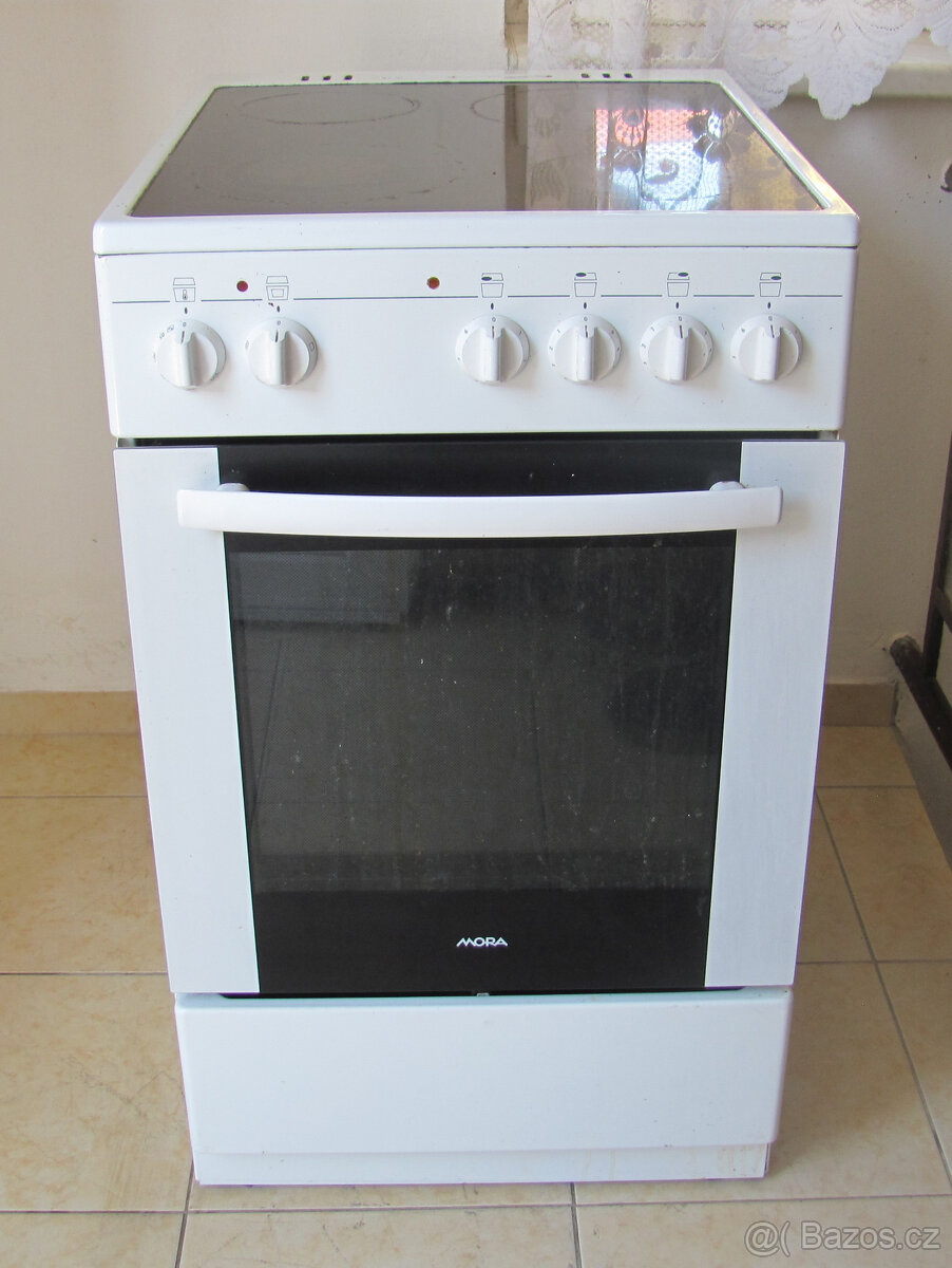 Prodám funkční sklokermaický sporák Mora CS 110 GW, pro klasické pečení a sklokeramickou deskou s Hi-light plotýnkami.