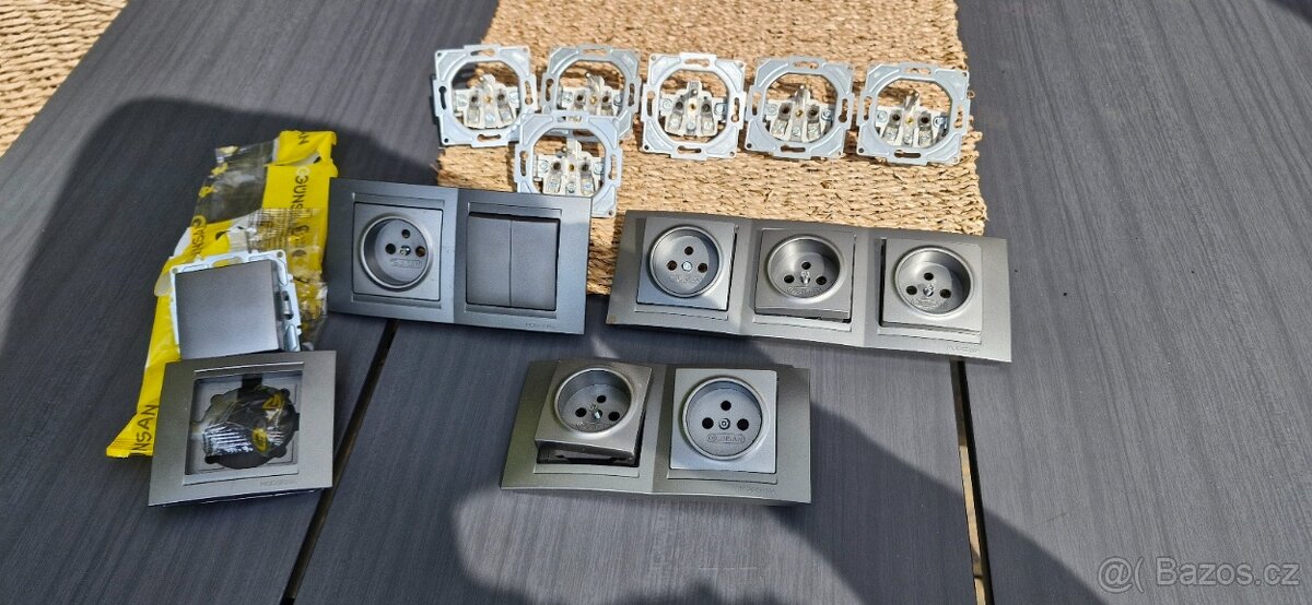 Prodám málo používané zásuvky + vypínače, včetně rámečků ( i jednotlivě )