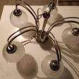 Prodám krátce použitý a velmi zachovalý kompletní a plně funkční 5 ramenný lustr chrom mat se skleněnými , mléčně leptanými podstavnými stínidly / baňkami průměr 125 mm/ i zdroji / žárovky s menším závitem á 40-60 W.Průměr lustru 580 mm a výška 300 mm, řetězový závěs dlouhý 500 mm. Pouze osobní odběr Staré Město u Uh. Hradiště.