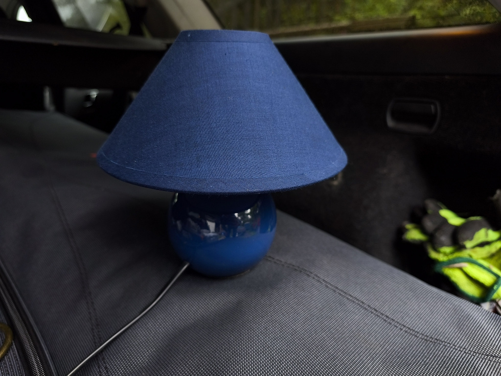 Prodám stolní lampičku s tmavě modrým textilním stínítkem, glazovaný keramický podstavec. Včetně nové LED žárovky 4W, funkční, viz fotky. Důvod prodeje úklid pozůstalosti. Parametry např. zde: https://www.rent.cz/rabalux-4906-stolni-lampa-ariel-1xe14-40w-230v.html