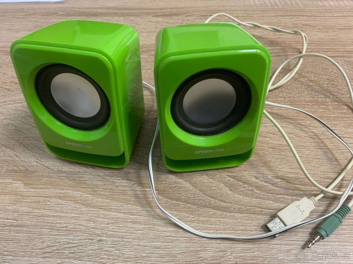 Prodám reproduktory k PC. Možnost regulace hlasitosti + připojení sluchátek.