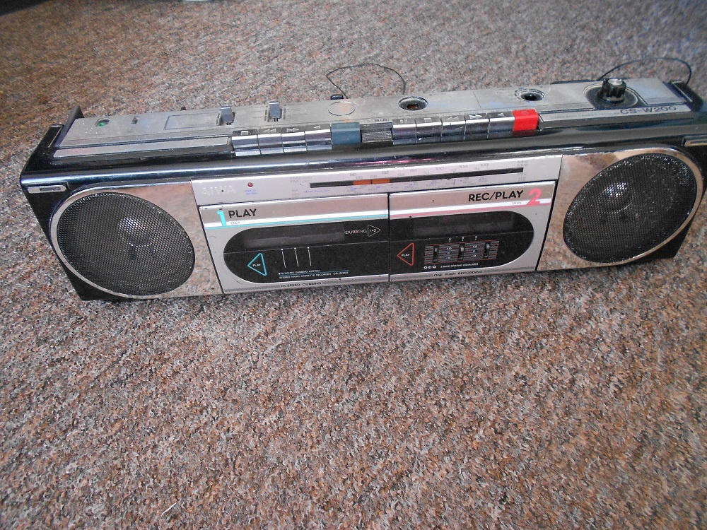 Prodám radiomagnetofon AIWA, stav viz foto - chybí madlo, knoflíky, magnetofon nutno opravit radio funkční