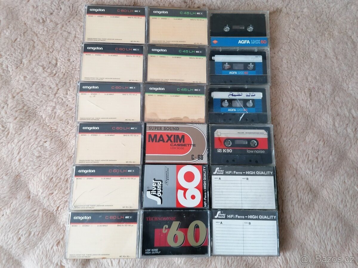 Použité MC kazety Emgeton, Agfa, ORWO, Silversound, atd...