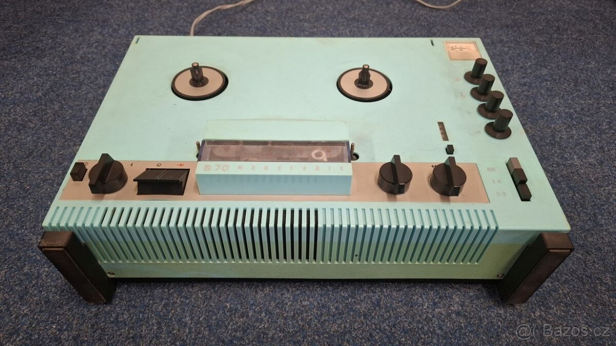 Nabízím kotoučák Tesla B 70 ANP 260 v této " překrásné " blankytně modré barvě, motor se točí, převíjí, přítlačná kladka má sloupanou gumu, takže asi pro nějakého sběratele do regálu.