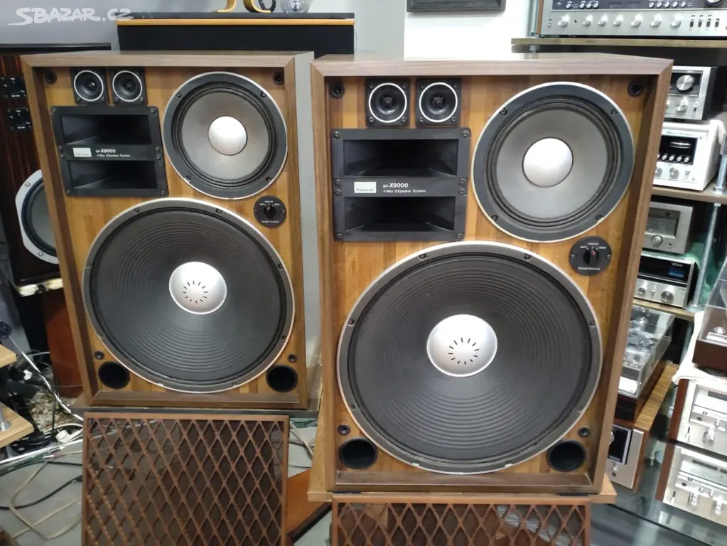 Nabízím Sansui SP X 9000 ve výborném technickém a optickém stavu. Jedná se o nejvyšší model reproduktorů této řady, jsou to čtyř pásmové bedny s šesti reproduktory, výkonem 200 Wattů a s vysokou citlivostí 100 db. Zvukově jsou reproduktory výborné, jednotlivé reproduktory byli odborně proměřeny a odzkoušeny. Možnost prohlídky a poslechu v naší akusticky výborné a prostorné poslechové místnosti.