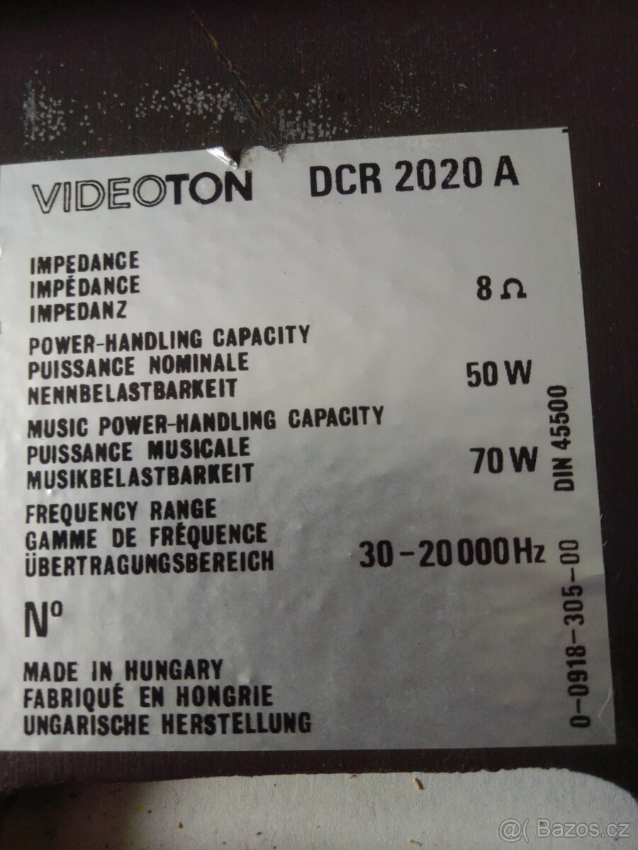 Náhradní díly z reproboxu Videoton DCR 2020A.Rámečky na basový a středový reproduktor,bassreflexový nátrubek přední díl výškového reproduktoru a středový reproduktor s poškozenou membránou ale funkční cívkou + výhybkou.