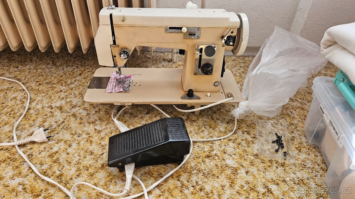 Nabízím starší šicí stroj. Z manuálního pohonu byl upraven na elektrický.