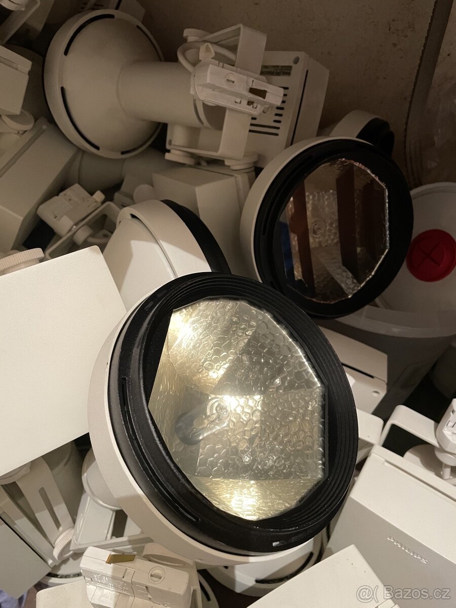 Prodám použitá halogenová světla Philips MRS-501,75w +elektrolišty viz foto,cca 40ks.Cena50kč-ks