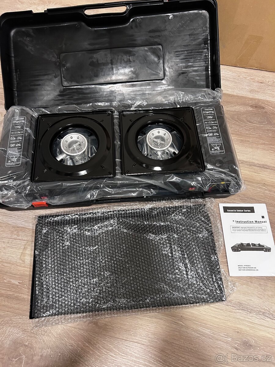 Přenosný plynový vařič se 4 hořáky - [25.3. 2026]s úložným stojanem, ochranný kryt