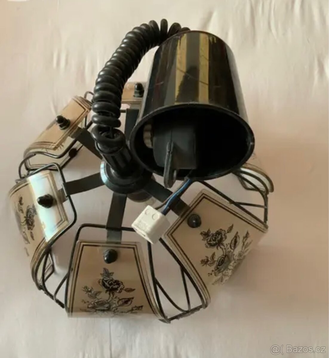 stahovací lustr - [28.3. 2026]stahovací lustr s ručkou, plně zapletený-bez vady, pěkný , evokující retro starožitný styl a přesně tak je starý, plně funkční,mechanicky nahoru a dolu.