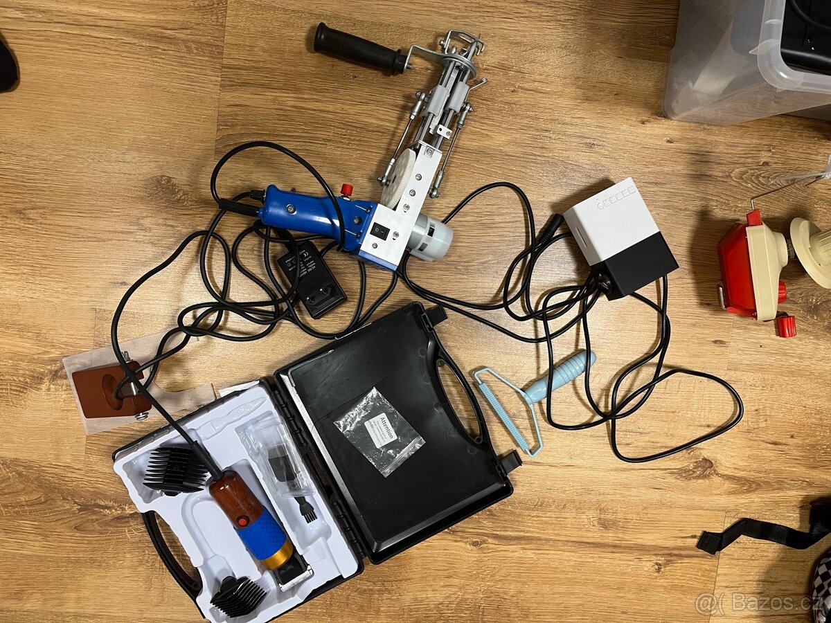 tufting gun + projektor + vsechny veci do startu