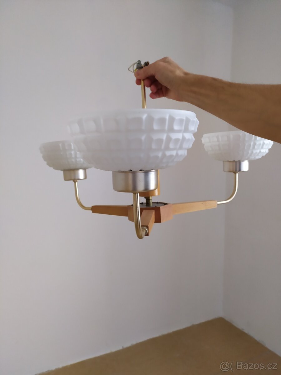 Prodám lustr, 3 světla, závěsná výška 38cm, rozpětí světel 68cm, cena 1.500Kč,mob.722 733 866