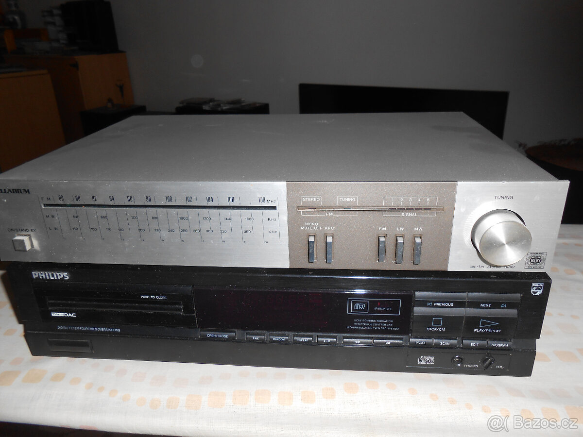 Nabízím funkční tuner Palladium, kovový čelní panel, manuální ladění, zachovalý stav, podsvícení funkční, připojení na cinch.
