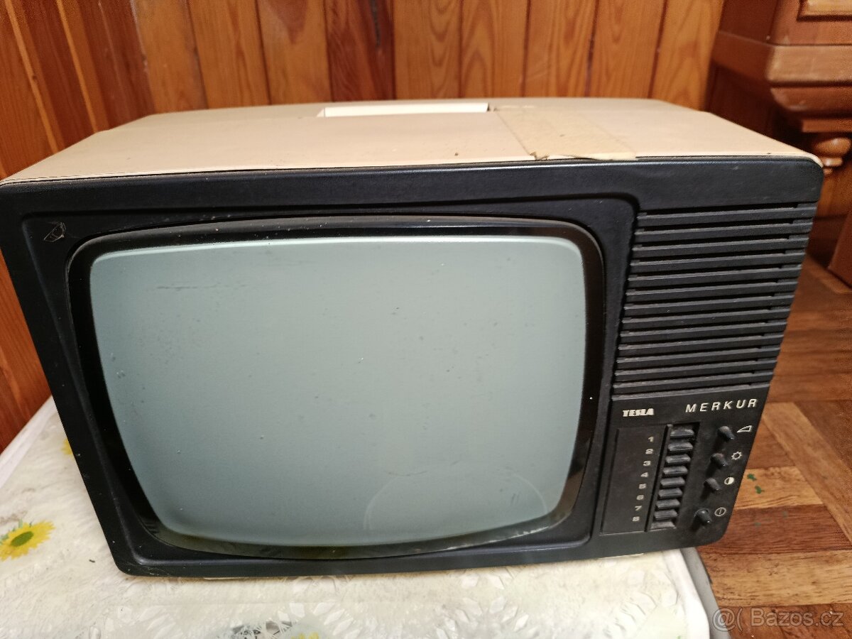 ((( TESLA MERKUR ))) - [2.3. 2026]Prodám funkční černo-bílý televizor značky Tesla merkur, včetně staré už nic moc krabice. Televizor po připojení přes video hraje.