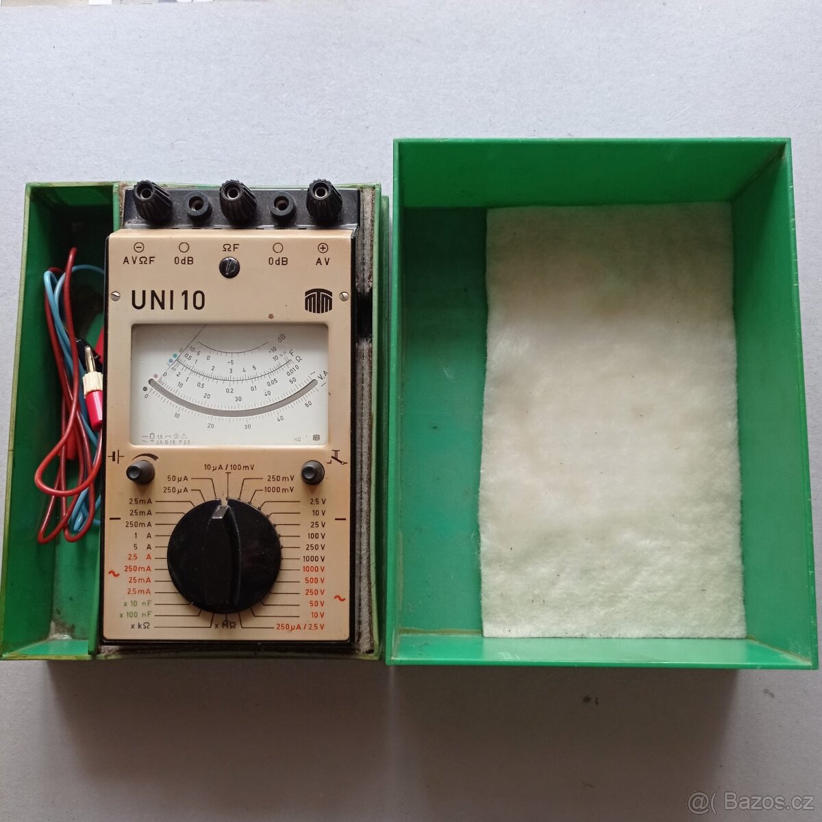 Prodám analogový retro multimetr (měřák) UNI 10. Odskoušeny, funkční. 1499kč.