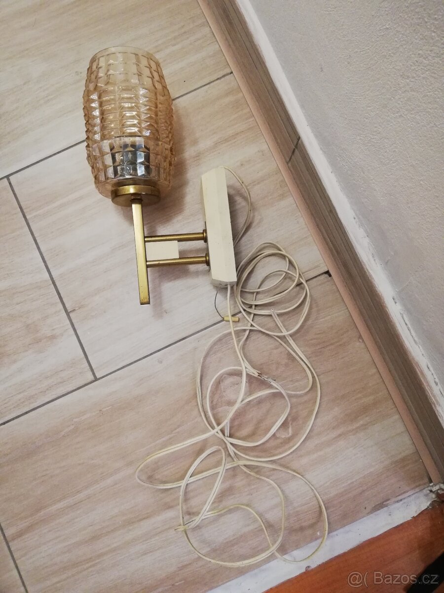 Prodám nástěnné svítidlo. Vzdálenost držáku krytu od zdi 12cm, výška celkem cca 31cm, kryt skleněný cca 9,5x17cm.