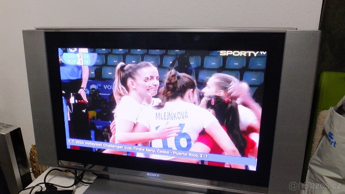 TV SONY KE-37XS1 stříbrný, uhlopříčka 95cm, bezvadný zvuk přes velké postranní reproduktory, slot na karty Sony memorystick, spousta vstupů a výstup pro sluchátka a pro hifi. Držák, který nezklame. Cena 999Kč. Mohu přidat settopbox za 200 vč. DO a kabelů.
