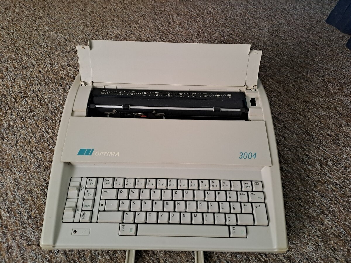 Prodám psací stroj elektrický OPTIMA 3004 kufříkový, funkční, cena dohodou