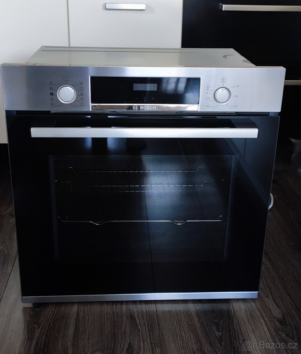 Prodám vestavnou trouba BOSCH, v.59 x š.59,5 cm, 1x rošt / teleskopický výsuv, 1x plech, časovač , horní / spodní ohřev, 3D cirkulace horkého vzduchu, funkce přídavné páry, gril, ekologický čistící program ( katalytický ).