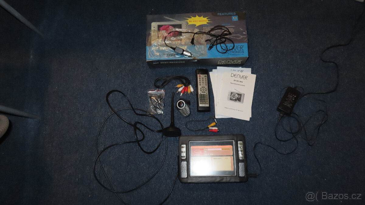 Úhlopříčka 8" (20cm), vstup AV, VGA, DVBT tuner, nabíječka, autonabíječka, dálkový ovladač, anténa, sluchátka, kabely, pouzdro návod, vše funkční.