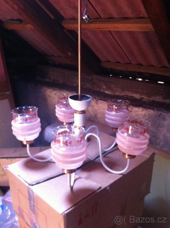 Růžový lustr- baňky sklo.