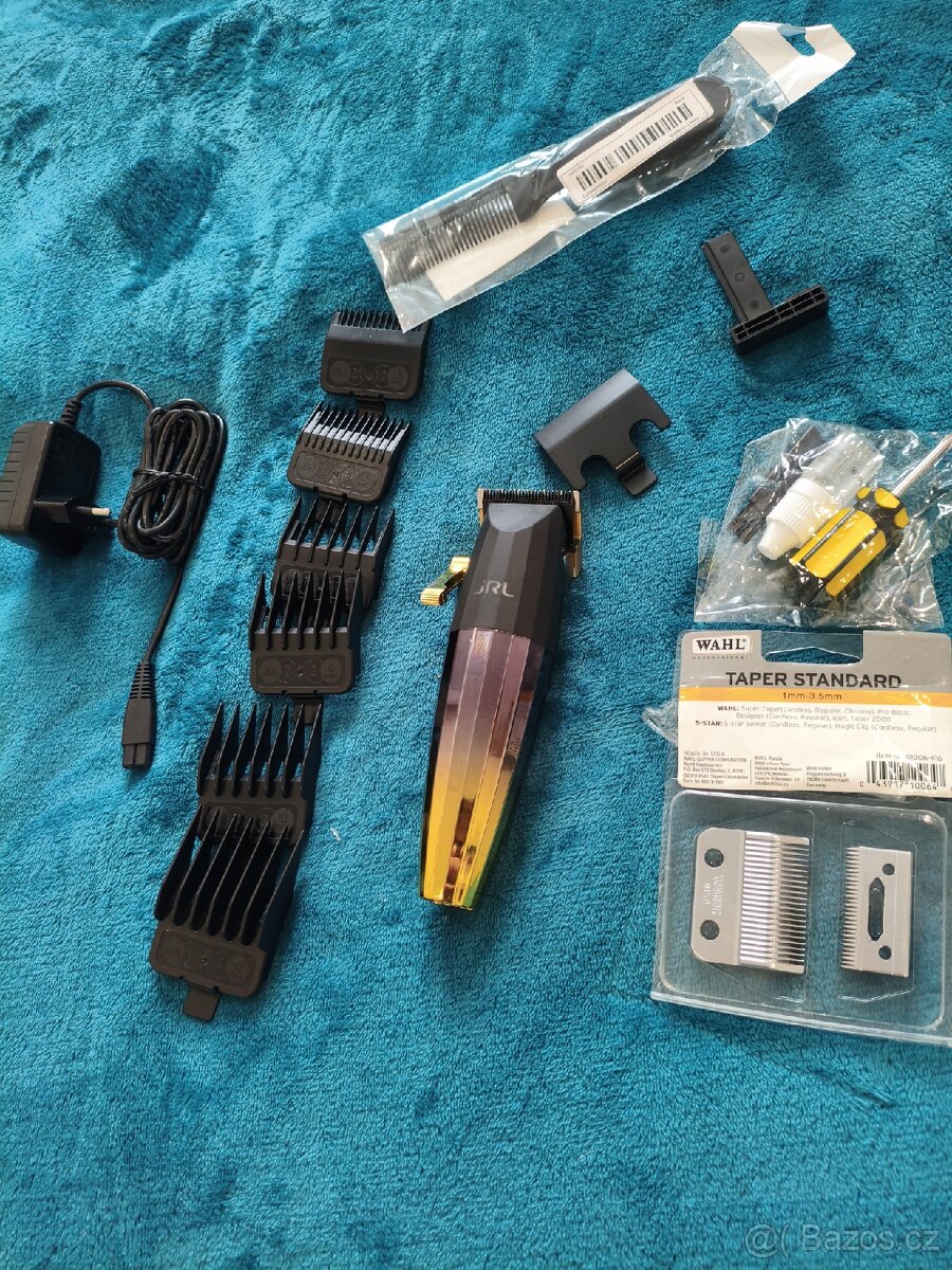 Bezdrátový střihací strojek JRL FF 2020C Gold nabitý inovativními technologiemi a dvourychlostním tichým motorem s 6000 nebo 7200 ot./min. Díky revoluční patentované technologii Cool Blade je střihací hlavice odolná vůči přehřívání...nabíjecí adaptér, šroubovák, kartáček, mazací olej, chránič čepele a 6 hřebenů (1,5 mm, 3 mm, 4,5 mm, 6 mm, 10 mm, 13 mm.... Stroj byl používán jeden rok, v dobrém stavu, vyčištěný a připravený k použití.
