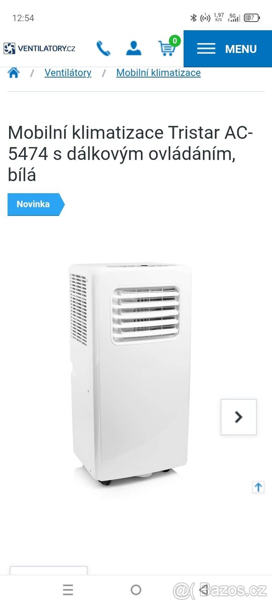 Prodám téměř nepoužitou mobilní klimatizaci zn.TRISTAR AC-5474, která je vhodná do bytu nebo kanceláře o velikosti cca. 40m3.