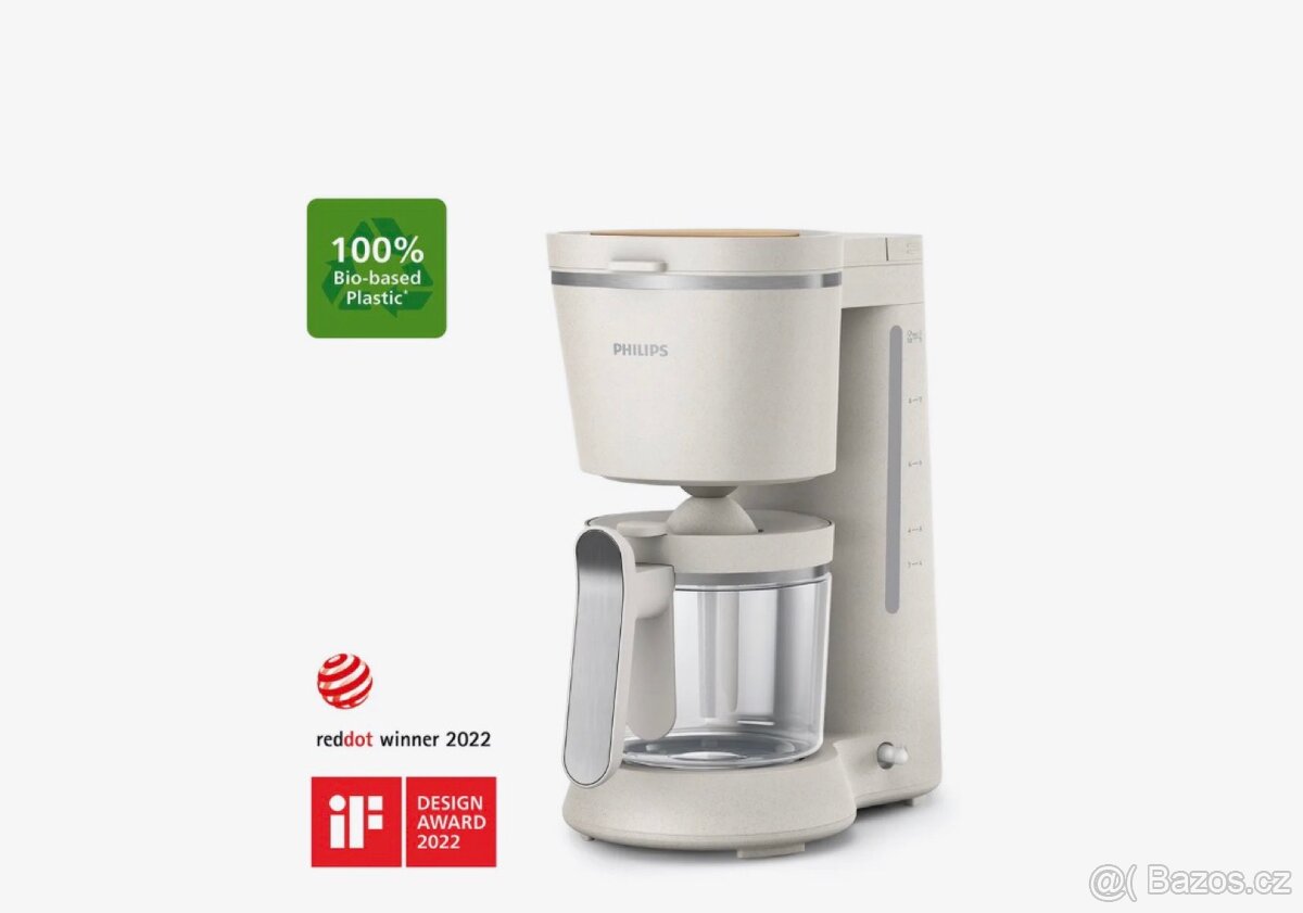 Prodám stylový kávovar na filtrovanou kávu Philips HD5120/00 (Eco Conscious Edition). Použitý pouze 1×, ve stavu nového kusu – bez jakéhokoliv opotřebení.