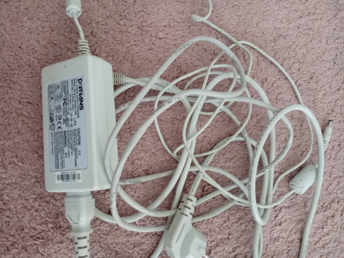 Na obrázku je napájecí adaptér (trafo) značky Potrans, model UP04821120A. Jedná se o síťový zdroj, který převádí střídavé napětí ze zásuvky na stejnosměrné napětí vhodné pro napájení drobné elektroniky.