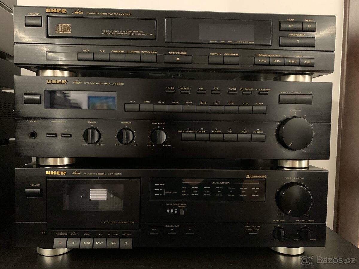 Prodám pěkné hrající sestavu Německé značky Uher, pěkný stav, přední panely bez škrábanců, zachovalá sestava, vše funkční. Cena za vše. Prosím volat.
