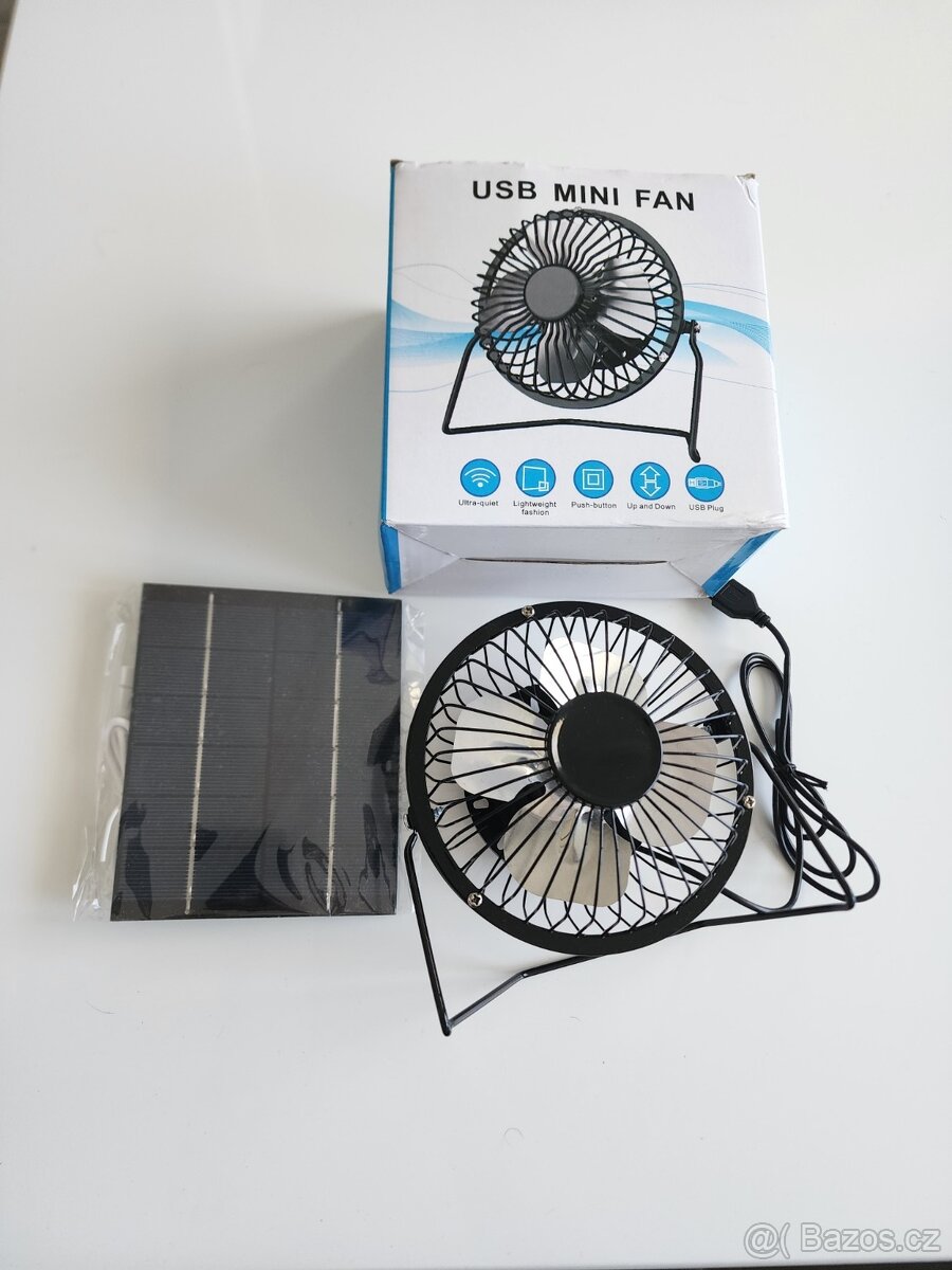 Nabízím malý stolní USB ventilátor v kovovém provedení včetně solárního panelu.