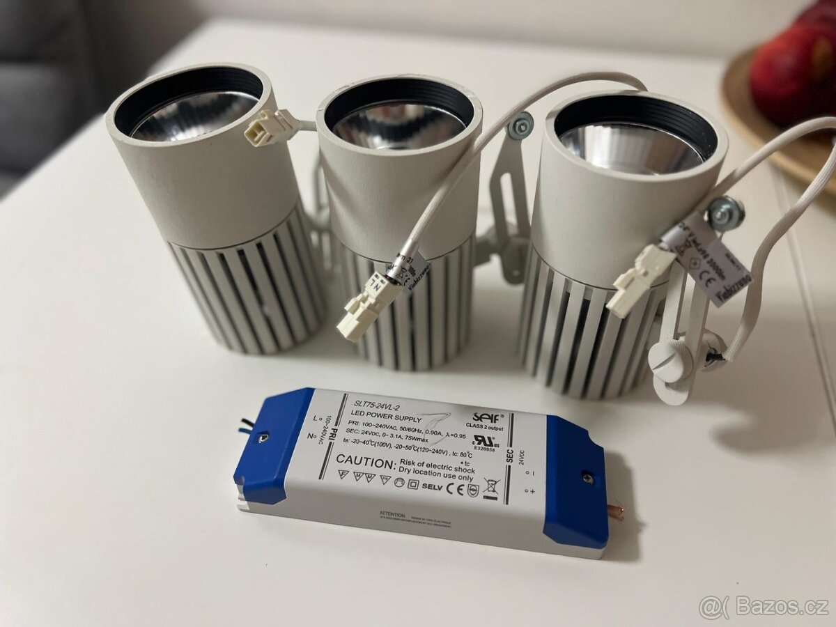 Prodávám celý sklad 60 kusů kvalitních italských designových bodových LED světel Viabizzuno (24V systém) společně s 30 kusy originálních LED driverů SELF SLT75-24VL-2.