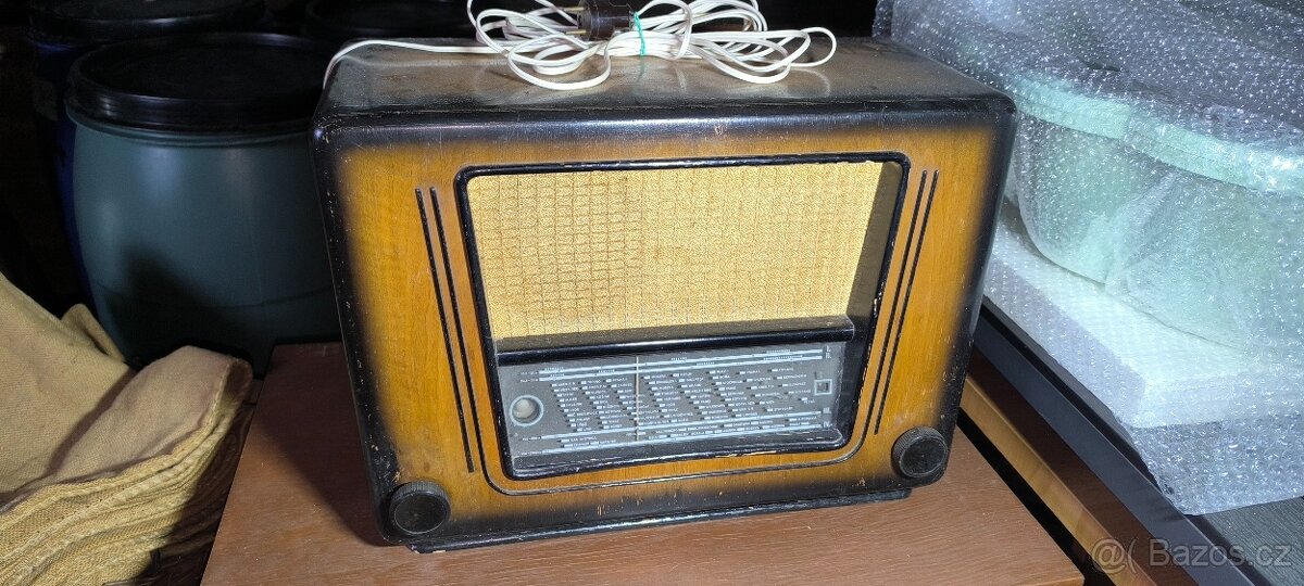 Prodám historický československý radiopřijímač vyráběný národním podnikem Tesla v letech 1948–1949. Jedná se o sedmiobvodový superhet s elektronkami ECH21, EF22, EBL21, EM11 a AZ11, který se prodával za 5 440 Kčs. Tento model, často označovaný jako "národní přijímač", byl vyráběn v několika pobočkách (Praha, Pardubice, Přelouč) a vyznačuje se dřevěnou skříní a skleněnou stupnicí.