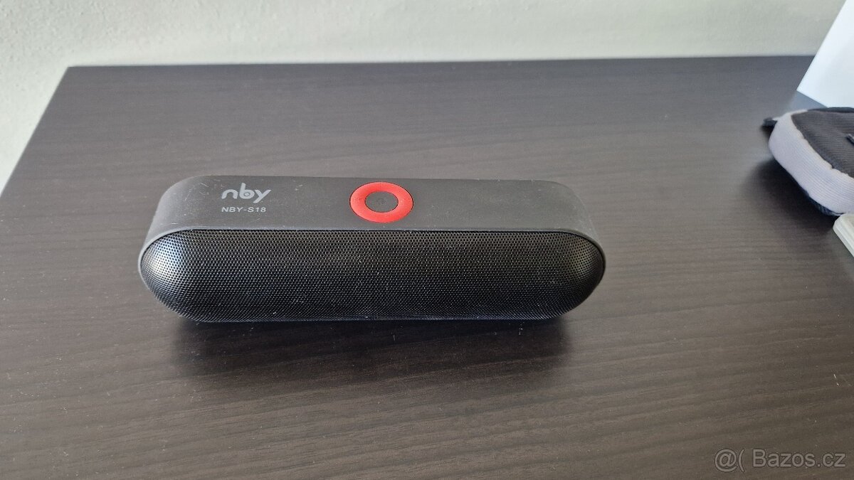 Bluetooth reproduktor NBY S18, možnost připojení přes bluetooth i kabel. Vstup na TF kartu, výkon 2 x 3W. Rozměry: 19 cm x 5,5 cm x 6 cm. Málo používaný. Možno předat osobně na Praze 3 nebo zaslat přes Zásilkovnu.