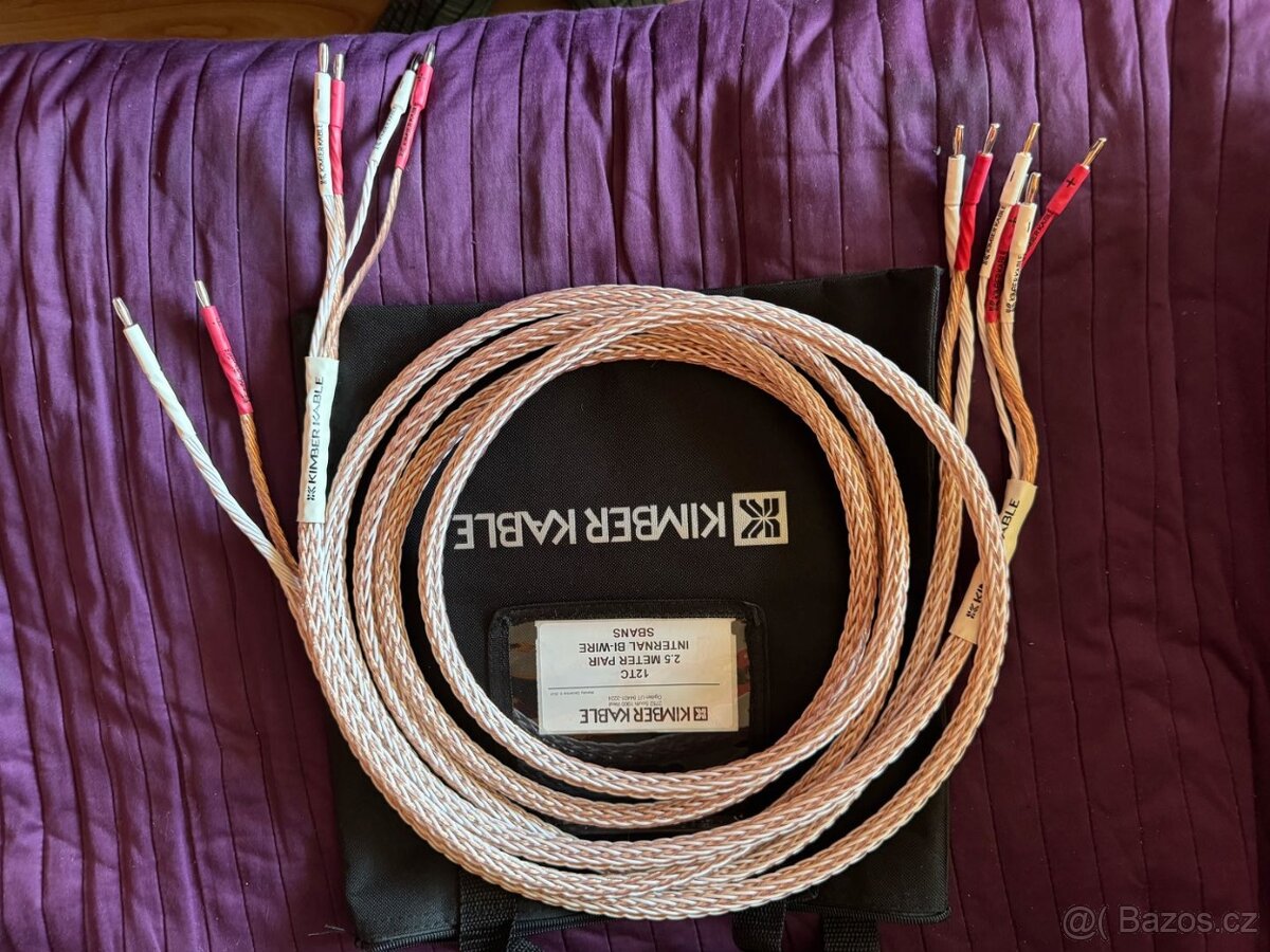 Prodám HIGH-END reproduktorové kabely Kimber kable 12 TC v délce 2* 2,5 metrů v provedení BI-WIRE kupované přímo v USA od Kimber Kable,orginál,žádná Čínská kopie,bedna,taška a faktura součástí prodeje.