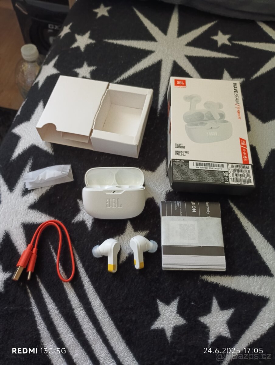 JBL Wave Beam - [19.4. 2026]Prodám sluchátka značka JBL. Sluchátka jsou pouze vybalená, jelikož mi nedrží v uších tak prodávám, mám i fakturu .