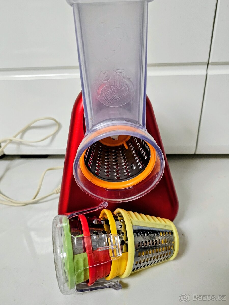 Bezpečný, jednoduchý, pohodlný a odolný - takový je elektrický kráječ a strouhač Tefal. Nejenže ovoce, zeleninu nebo třeba i sýr nakrájí během okamžiku, ale dodá jim navíc i rozmanitý tvar. Zamilujete si jeho kompaktní rozměry a širokou škálu funkcí, které dokáže zastoupit. Díky pěti nástavcům si poradí s jemným i hrubým strouháním, tenkými plátky, těstem na bramboráky nebo se strouháním tvrdého sýru. Dostatečný příkon 200 W zaručuje skvělý výsledek i během několika sekund. Jednotlivé nástavce kuchyňského robotu lze zasunout jeden do druhého, a díky tomu je tak přístroj ještě více kompaktní.