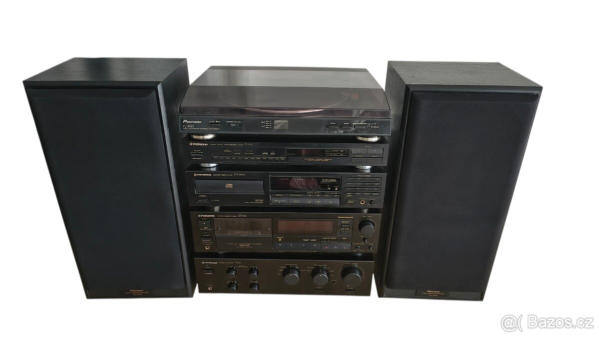 Pre začínajúceho "hifistu" ponúkam na predaj plne funkčnú zostavu komponentov v hifi rozmere (42cm) od firmy Pioneer. V cene zosilňovač A-401, tuner F-223, cd player PD-5700, kazet. 1-deck CT445, gramo PL990 (plnoautomat), 2xrepro CS-3070. Displeje sú pekné jasné, kryt na gramo preleštený, nová ihla AT (nehraná), nové remienky (aj na decku), nastavený prítlak ramena. Repro pekné, neobyté, nenavlhnuté (120W). V prípade záujmu viem doplniť o ďalšiu sadu identických repro CS-3070 (zosik poskytuje túto moznosť pripojenia), poprípade doplniť o komponent SR60 (reverb.ampflifier "tzv. "magické oko" - pomerne vzácny a vyhladávaný komponent). Viem poslať aj video o funkčnosti. Cena 480€/11.700 Czk. Pri osbnom odbere zľava. Som z Nitry.