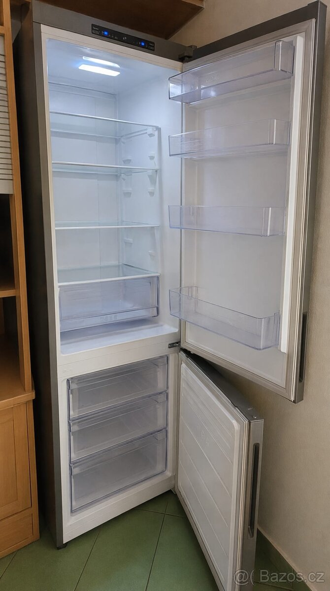 Tahle lednice má cca 267 l chladničku + 98 l mrazák a systém No Frost, takže se nemusí odmrazovat