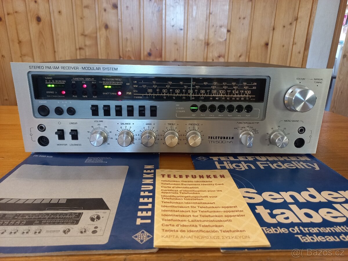 Prodám stereofonní receiver TELEFUNKEN TR-500 v perfektním stavu (pouze oděrka na knoflíku a u konektoru mikrofonu), funkční. K receiveru je originální uživatelský manuál, záruční list a brožurka. V případě zájmu prosím volat.