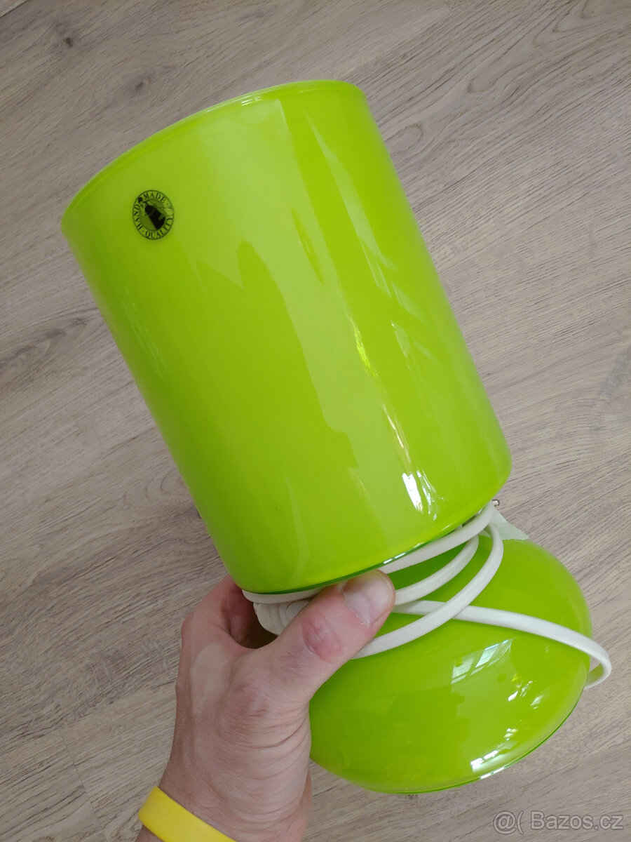 Lampa z ručně foukaného skla, vyráběna v 80. letech, retro. Výborný stav, plně funkční, sběratelský kus.