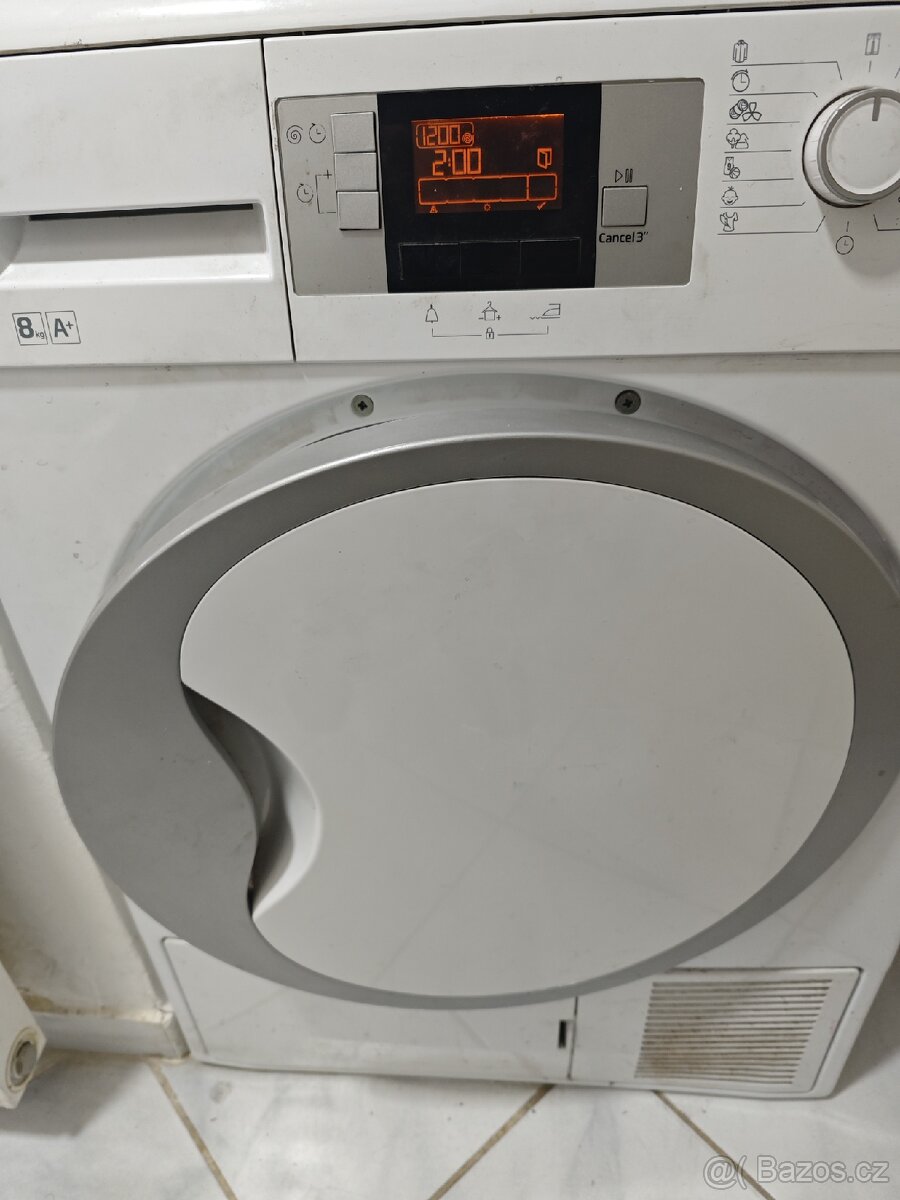 Bez zátěže je plně funční, když se ale naplní prádlem, tak se neroztočí. Asi už je slabý motor, takže někomu na opravu, nebo na náhradní díly. Tepelné čerpadlo a vše včetně ovládacího panelu je plně funkční.