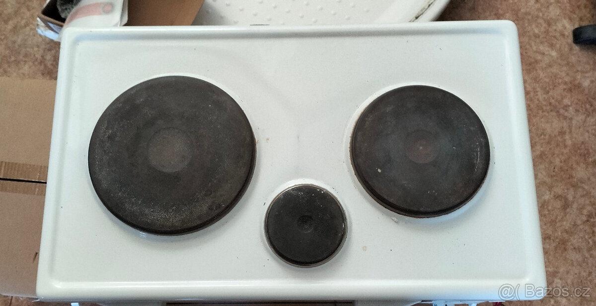 Minitrouba - [28.4. 2026]Prodám pečicí trouba s grilem • objem 45l • plynulá regulace teploty v troubě 90-230°C • 4 topná tělesa • 120 min. časovač • příkon trouby 1600 W • 2 litinové plotny • levá plotýnka 185 mm (1200 W) • pravá plotýnka 155 mm (600 W)