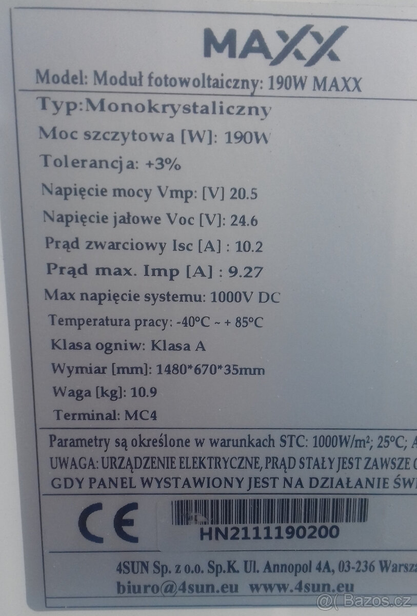 Prodam solarni panel MAX190W