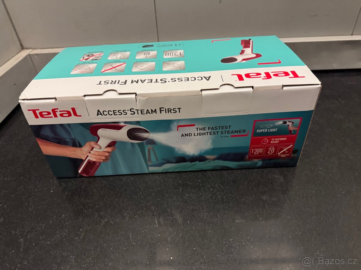Prodám zcela nový, nikdy nepoužitý napařovač oděvů Tefal Access Steam Minute Red DT6132E0.