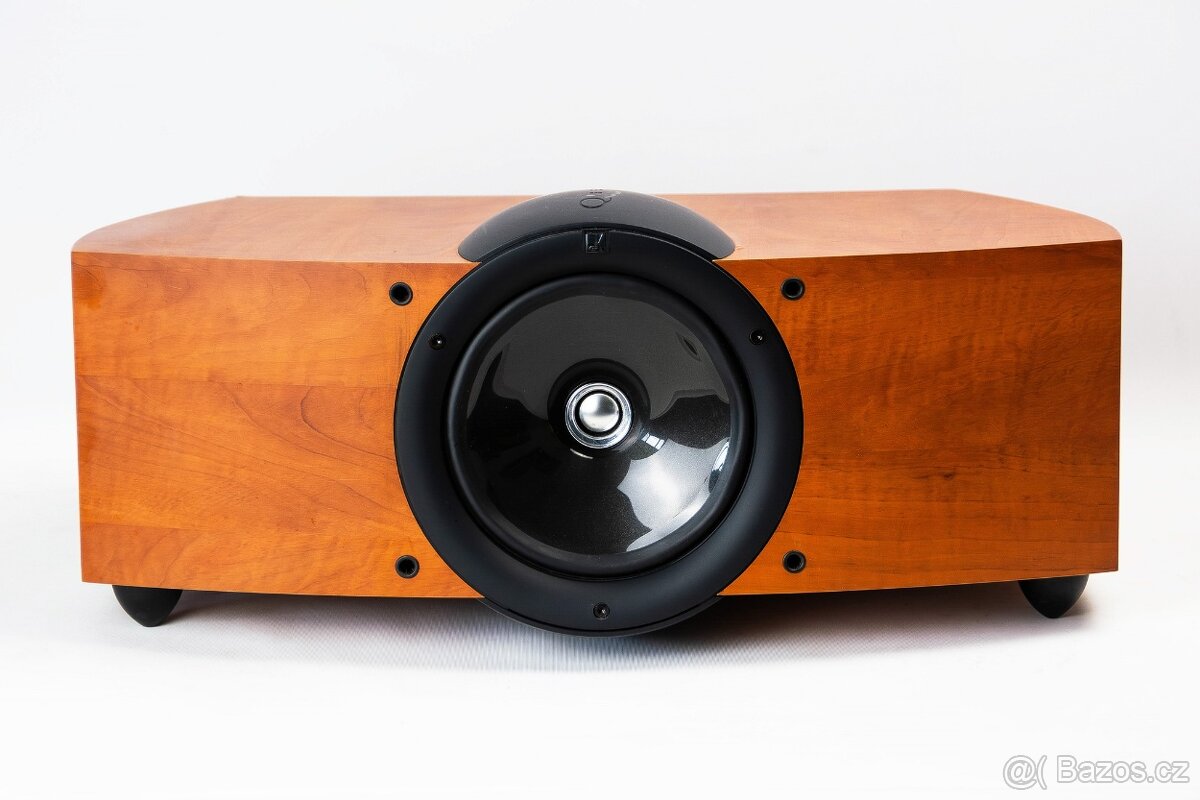 KEF Q9c představuje technologicky vyspělý centrální reproduktor, který tvoří akustické jádro řady Q a využívá unikátní konstrukci Uni-Q® pro dosažení dokonale fázově vyrovnaného zvuku. Specifikem tohoto modelu je koaxiální uspořádání měničů, kde je výškový reproduktor umístěn přesně v akustickém středu středobasového kužele, čímž vzniká bodový zdroj zvuku s mimořádně širokým rozptylovým úhlem. Díky této konstrukci nabízí Q9c bezkonkurenční srozumitelnost dialogů a precizní lokalizaci prostorových efektů, které zůstávají stabilní bez ohledu na pozici posluchače v místnosti. Kabinet je magneticky stíněný a disponuje zaoblenými bočnicemi pro minimalizaci difrakcí, což v kombinaci s bassreflexovým nátrubkem na přední straně usnadňuje jeho integraci do těsné blízkosti televizoru nebo do nábytkových sestav. Reprosoustava se vyráběla v letech 2002-06 v Číně a stála cca.430, - €.